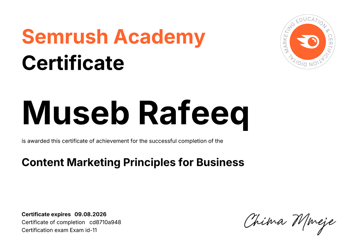 Rafiq have a problem-solving nature. He stay connected and report on a regular basis. He is handling digital marketing (SEO & Goole Ad) work for me from so many years. Our websites ranking on 1st page of Google.